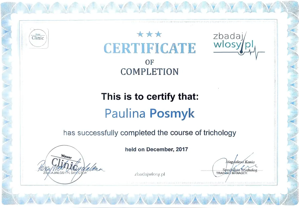 - Wawer Clinic / Zbadajwlosy.pl – Kurs trychologiczny, poziom podstawowy (12.2017)