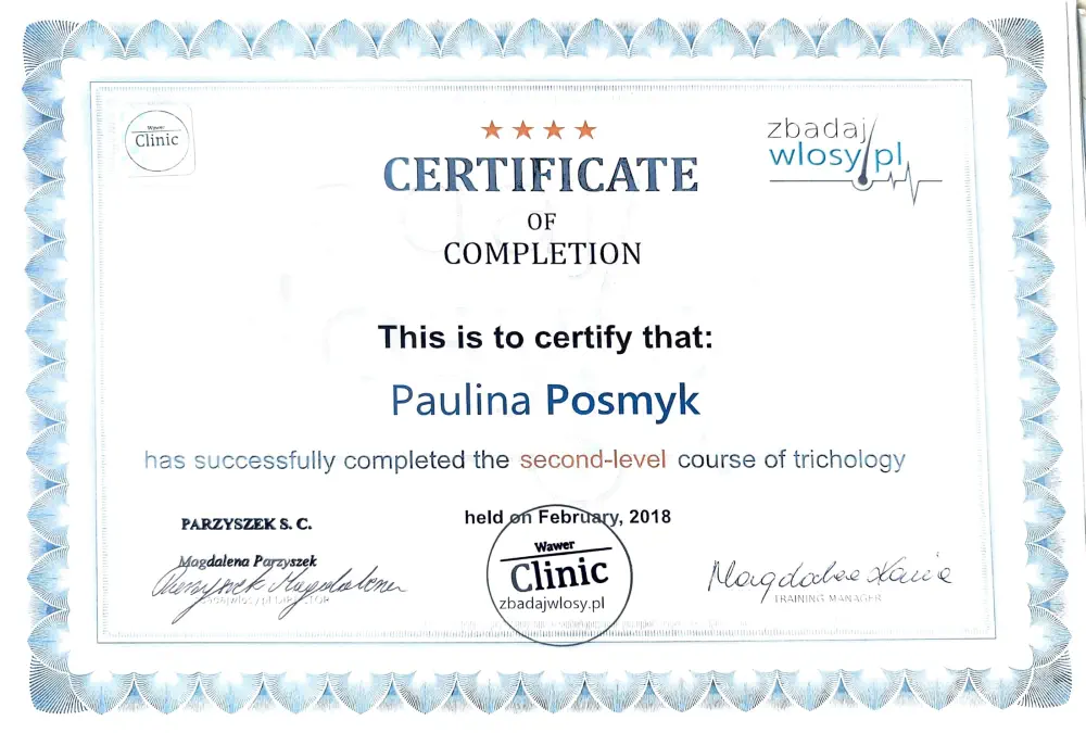 - Wawer Clinic / Zbadajwlosy.pl – Kurs trychologiczny, poziom zaawansowany (02.2018)