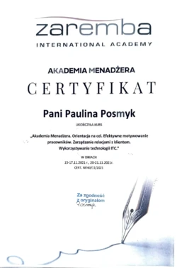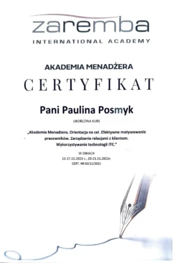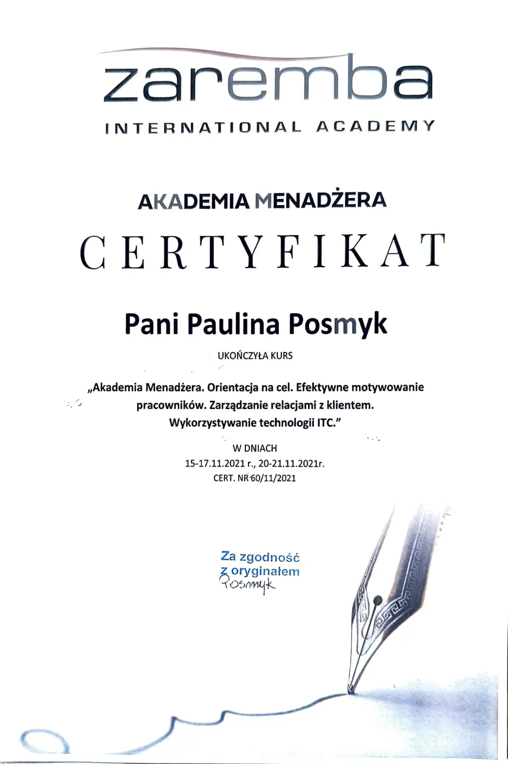 - Akademia Menadżera – Zaremba International Academy (15–21.11.2021)