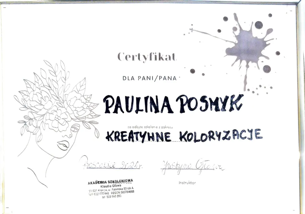 - Kreatywne Koloryzacje – Akademia Szkoleniowa Klaudia Głowa (2021)